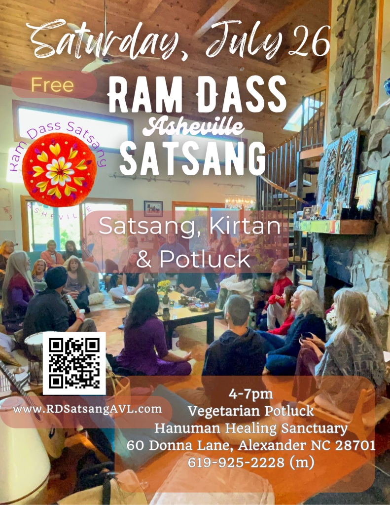 The Ram Dass Satsang AVL is open to everyone. Whether you’re looking for spiritual guidance, a supportive community, or a place to simply be, we invite you to join us.