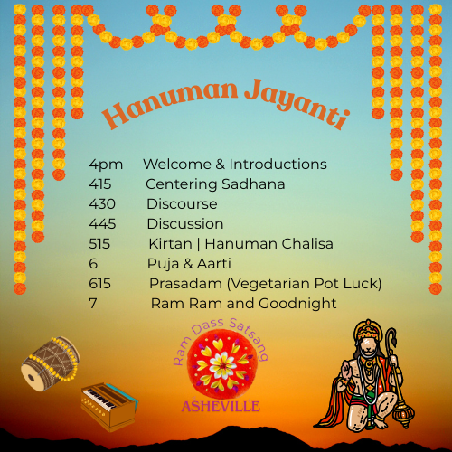 Inspired Ram Dass, his guru Neem Karoli Baba, and Hanuman our group gathers to deepen our understanding of spiritual practices and teachings, and to support one another in living more intentional, meaningful lives. This is a newly forming community and people from all walks of life are welcome. We believe in the power of presence, the beauty of service, and the importance of creating a space where everyone feels seen and valued.
